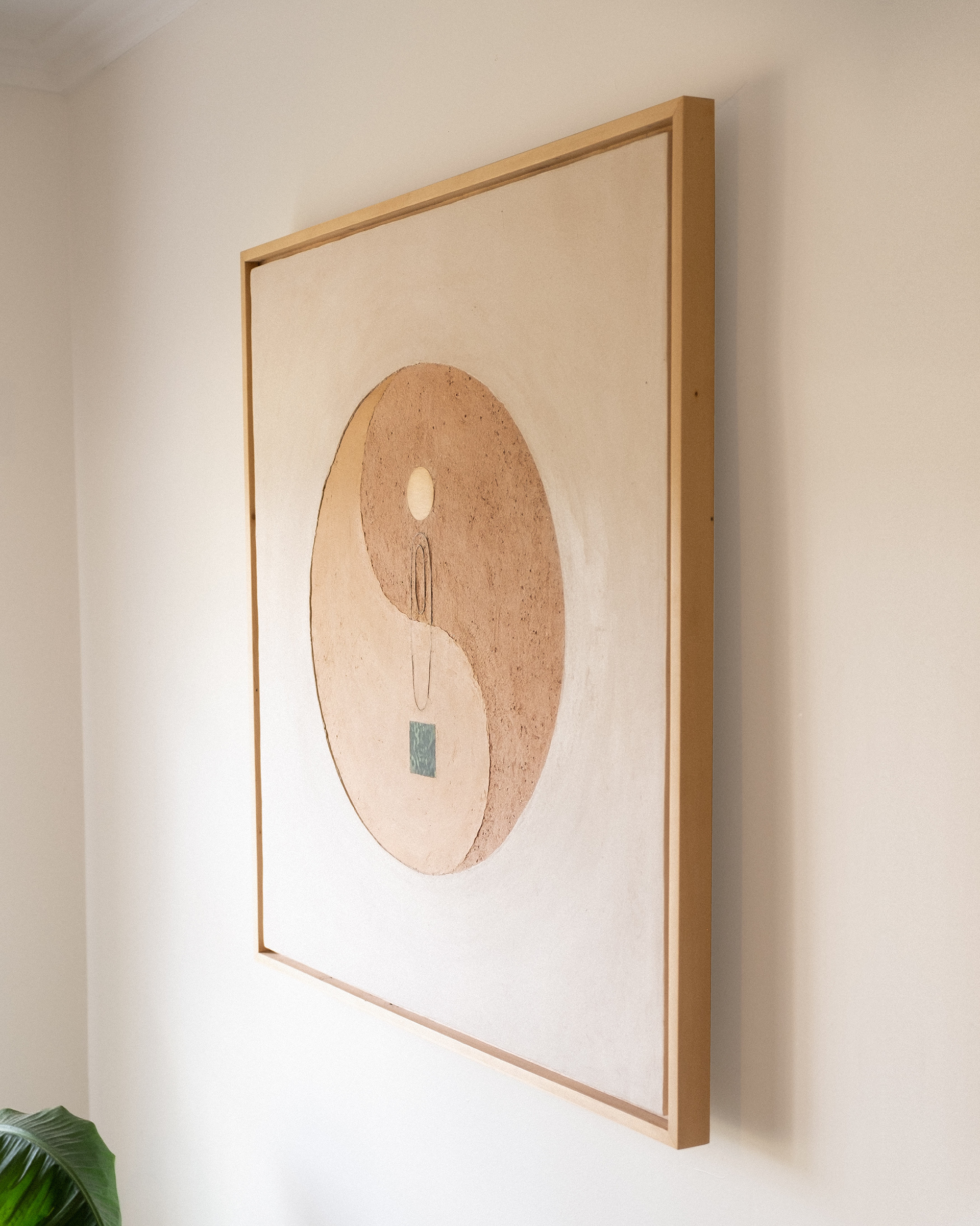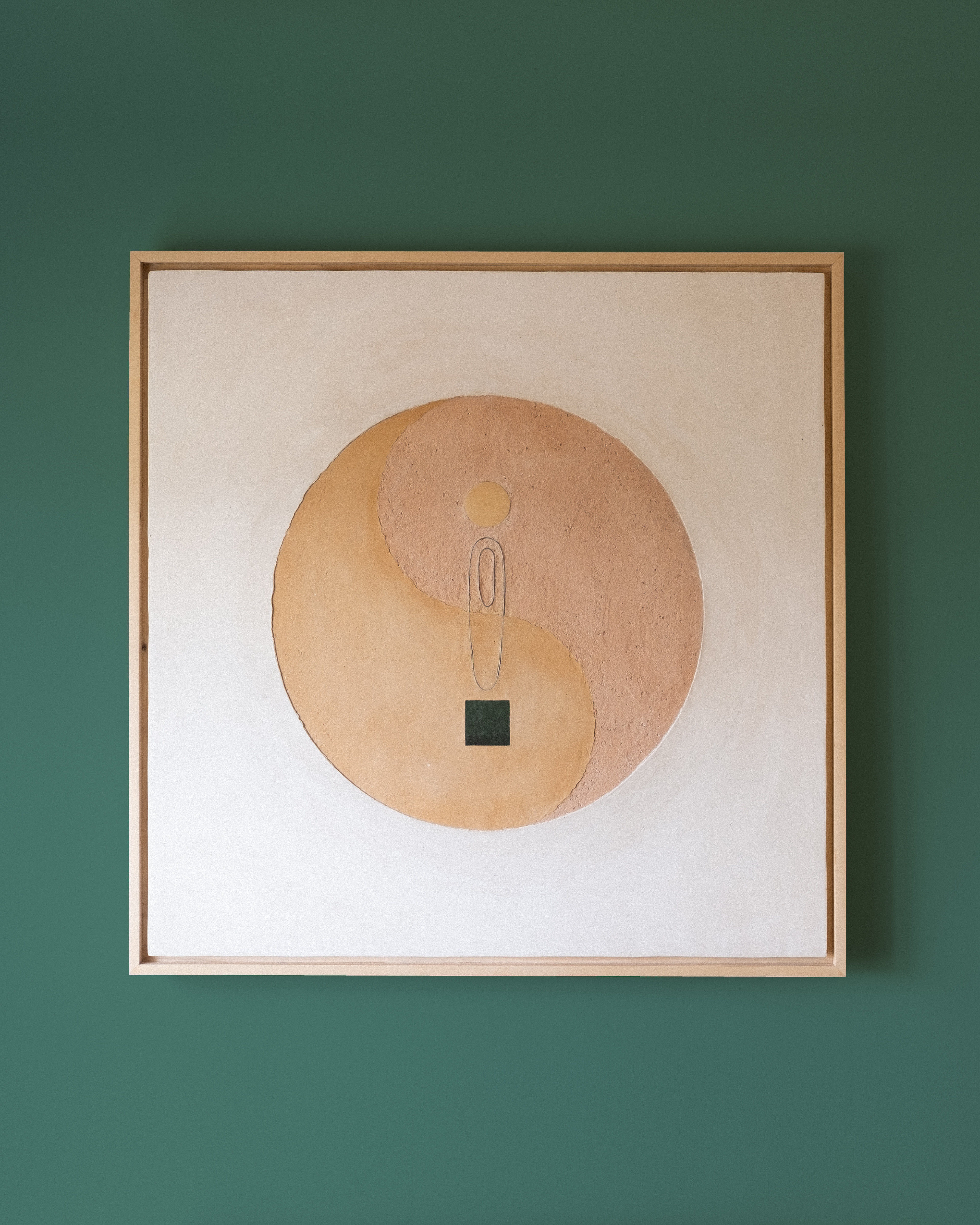 PLASTER, PAPER, HUON PINE, GALVANISED WIRE, TERRACOTTA, MUDSTONE, FIRE ASH AND GLAZED CERAMIC BAKING DISH (MASS PRODUCED CRAP THAT FAILED AFTER TWO MONTHS OF USE), ON PLYWOOD + UNKNOWN PALLET PINE FRAME. ALL FOUND OBJECTS, APART FROM HUON PINE.