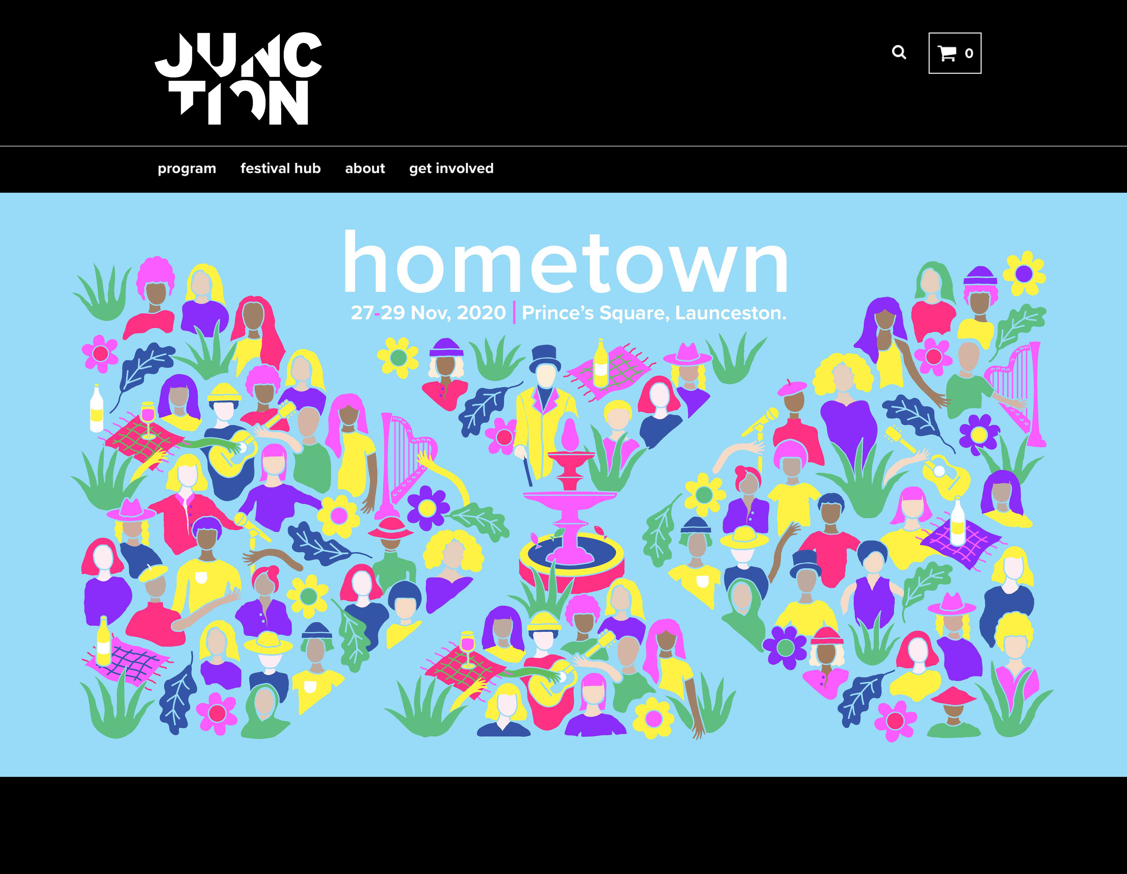 VISUAL IDENTITY, ILLUSTRATION, DIGITAL ASSETS AND PRINT DESIGN (POSTER/STAGE) FOR JUNCTION ARTS FESTIVAL "HOMETOWN" 2020.