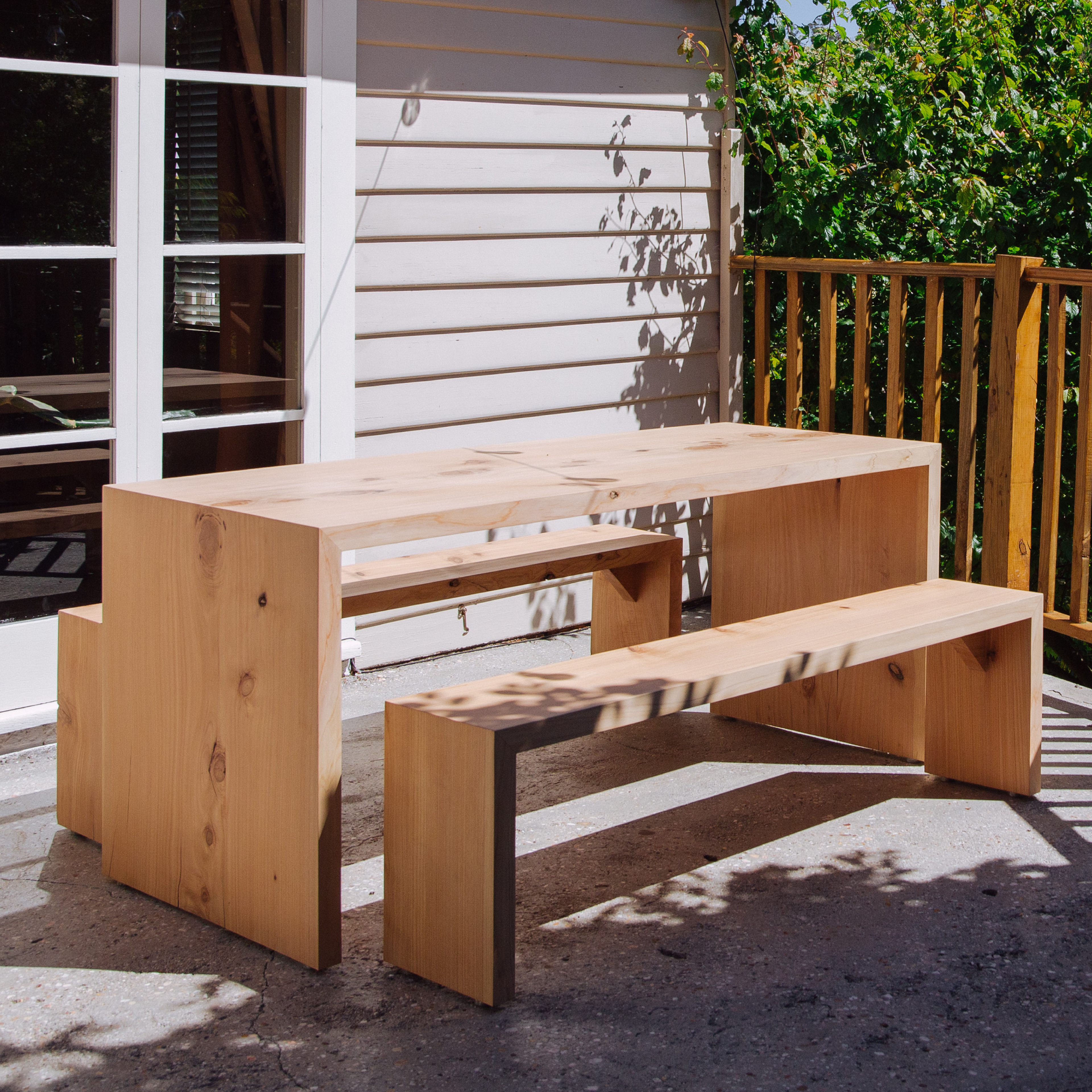OUTDOOR MACROCARPA TABLE & SEATS