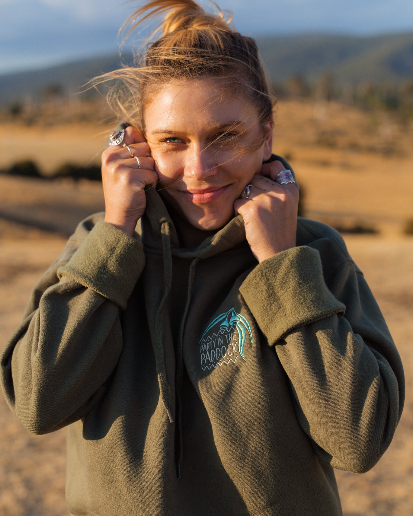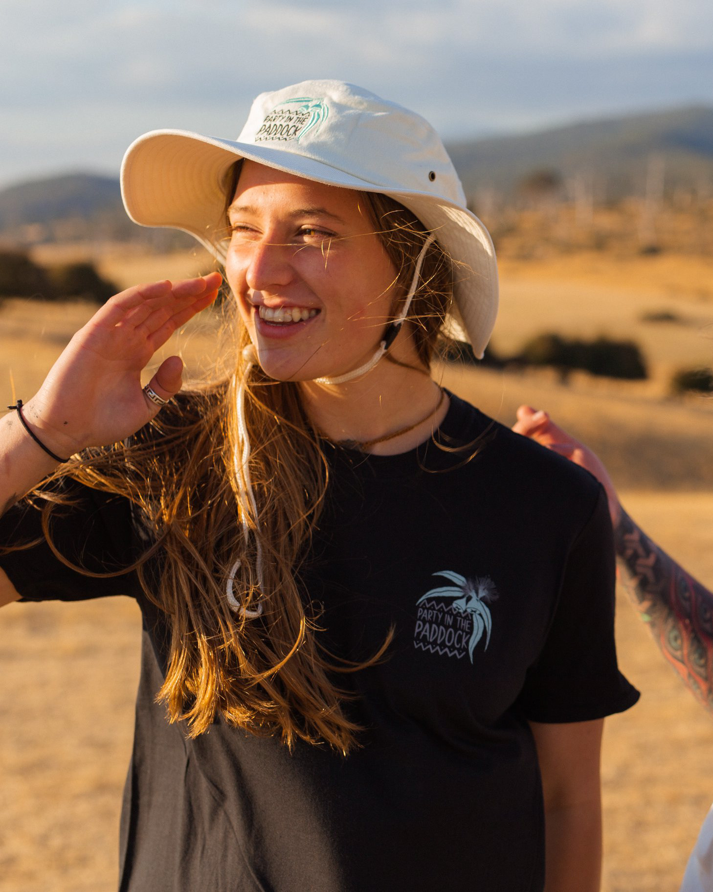 WASTE IS A HUGE ISSUE IN THE FESTIVAL GAME AND SOMETHING PITP AIMS TO SIGNIFICANTLY REDUCE EVERY YEAR. I HAVE BEEN DESIGNING FESTIVAL MERCH FOR OVER 6 YEARS AND A FEW YEARS IN I NOTICED MANY OF THE PURCHASES WERE MAINLY SERVING AS A MEMENTO AND ENDED UP SPENDING TO MUCH OF THEIR TIME HANGING IN A WARDROBE. SINCE THIS DISCOVERY I HAVE AIMED TO PRODUCE ITEMS THAT FUNCTION FOR DAY TO DAY, YEAR ROUND USE AS WELL AS SERVING AS A MEMENTO FOR PUNTERS. THE 2019 RANGE AIMS TO DO THIS BY SUBTLETY INCLUDING THE LINEUP, CHOOSING A PRINT COLOUR THAT HAS A LOW CONTRAST TO THE ITEM COLOUR, INCLUDING ITMES IN THE RANGE THAT ARE FREE FROM YEAR SPECIFIC INFO, AS WELL AS INTRODUCING TIMELESS TECHNIQUES LIKE EMBROIDERY & A GRATER CONSIDERATION FOR THE GARMENTS TEXTURE, FIT AND USE.