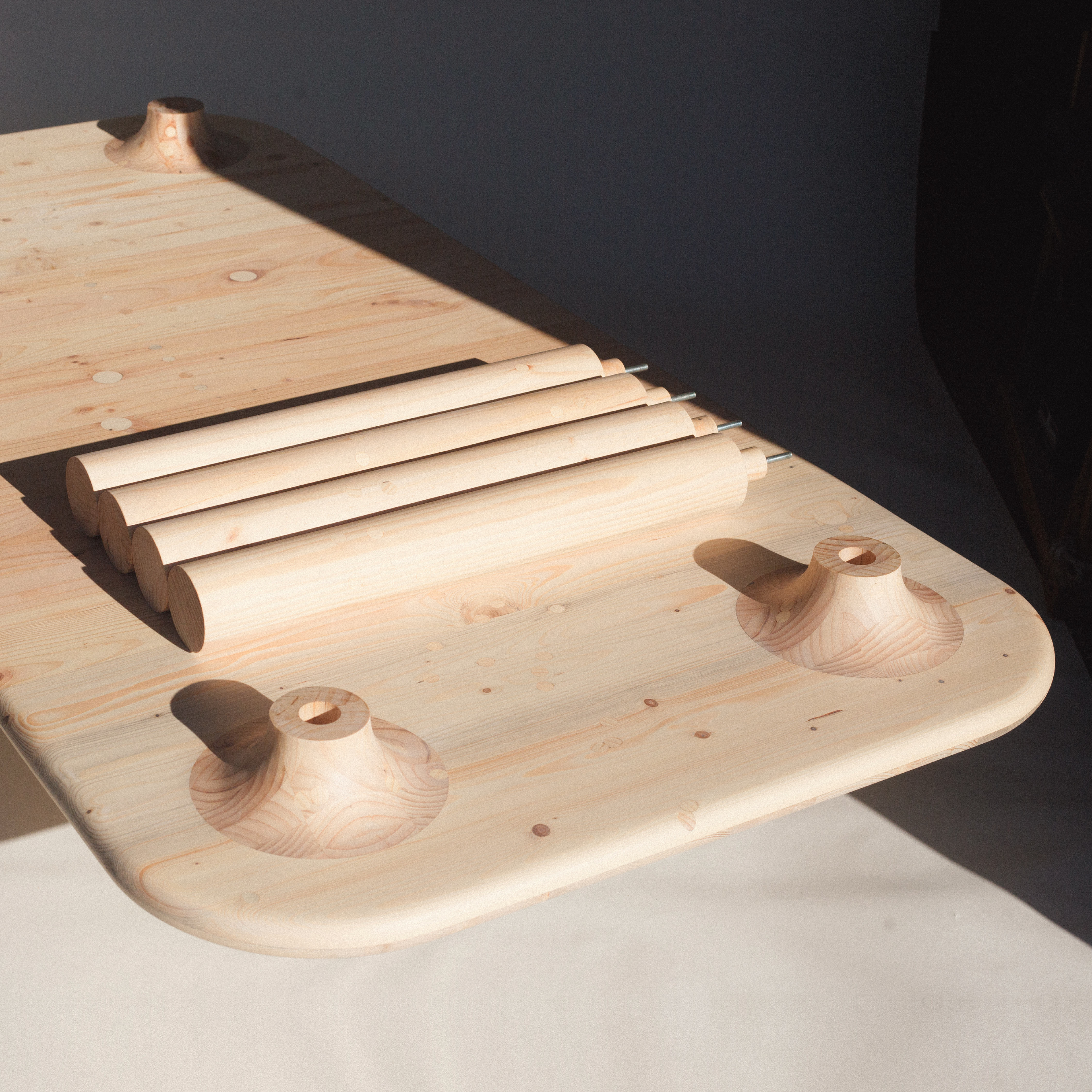 The result of a creative practice centered around the exploration of waste materials, ‘Rebirthed Pallet Dine’ is constructed from %100 discarded single-use pallets. The identification of this abundant material source/wastage informed the design's starting point. During the development of the piece and with the support of a Northern Tasmanian Waste Management Group Grant, a broadly applicable process for rebirthing discarded timber has been established. The piece takes a calm minimal form, to offset the unavoidable visual busyness created by the timber lamination system, and the removal of all hard edges explores returning the timber to a more tree like form.
